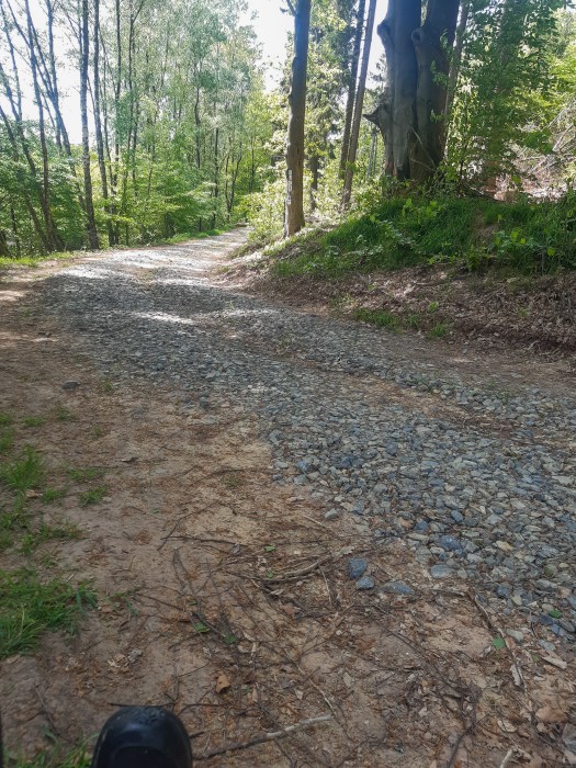 Vom Startpunkt bis zum Überqueren des Wiesbüttmoores breiter, wassergebundener Weg mit Granulatoberfläche mittlerer Körnung. Granulatoberfläche mittlerer Körnung, kurze Abschnitte (weniger als 200 m) mit grobem Schotter.
